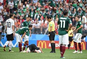 Чемпионат мира по футболу в России FIFA 2018. Групповой этап. Матч между сборными командами Германии и Мексики на стадионе "Лужники". Главный тренер сборной Мексики Хуан Карлос Осорио (справа) после окончания матча.
