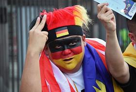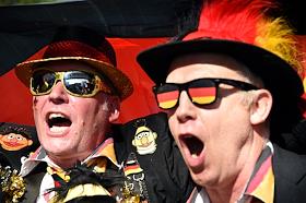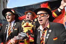 Чемпионат мира по футболу в России FIFA 2018. Групповой этап. Матч между сборными командами Германии и Мексики на стадионе "Лужники". Болельщики сборной Германии перед началом матча.