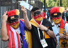 Чемпионат мира по футболу в России FIFA 2018. Групповой этап. Матч между сборными командами Германии и Мексики на стадионе "Лужники". Болельщики перед началом матча.