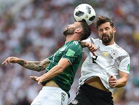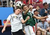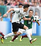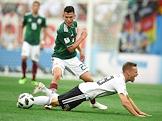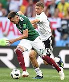Чемпионат мира по футболу в России FIFA 2018. Групповой этап. Матч между сборными командами Германии и Мексики на стадионе "Лужники". Игрок сборной Мексики Уго Айяла (справа) во время матча.