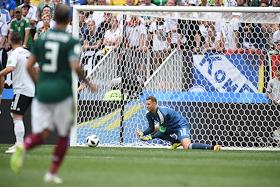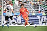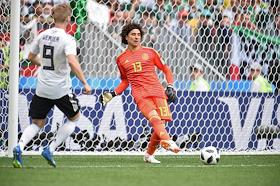 Чемпионат мира по футболу в России FIFA 2018. Групповой этап. Матч между сборными командами Германии и Мексики на стадионе "Лужники". Вратарь сборной Мексики Гильермо Очоа (справа) во время матча.