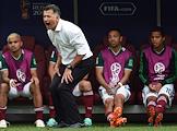 Чемпионат мира по футболу в России FIFA 2018. Групповой этап. Матч между сборными командами Германии и Мексики на стадионе "Лужники". Главный тренер сборной Мексики Хуан Карлос Осорио (справа) после окончания матча.