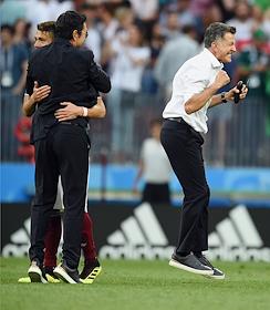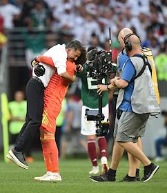 Чемпионат мира по футболу в России FIFA 2018. Групповой этап. Матч между сборными командами Германии и Мексики на стадионе "Лужники". Главный тренер сборной Мексики Хуан Карлос Осорио (слева) после окончания матча.