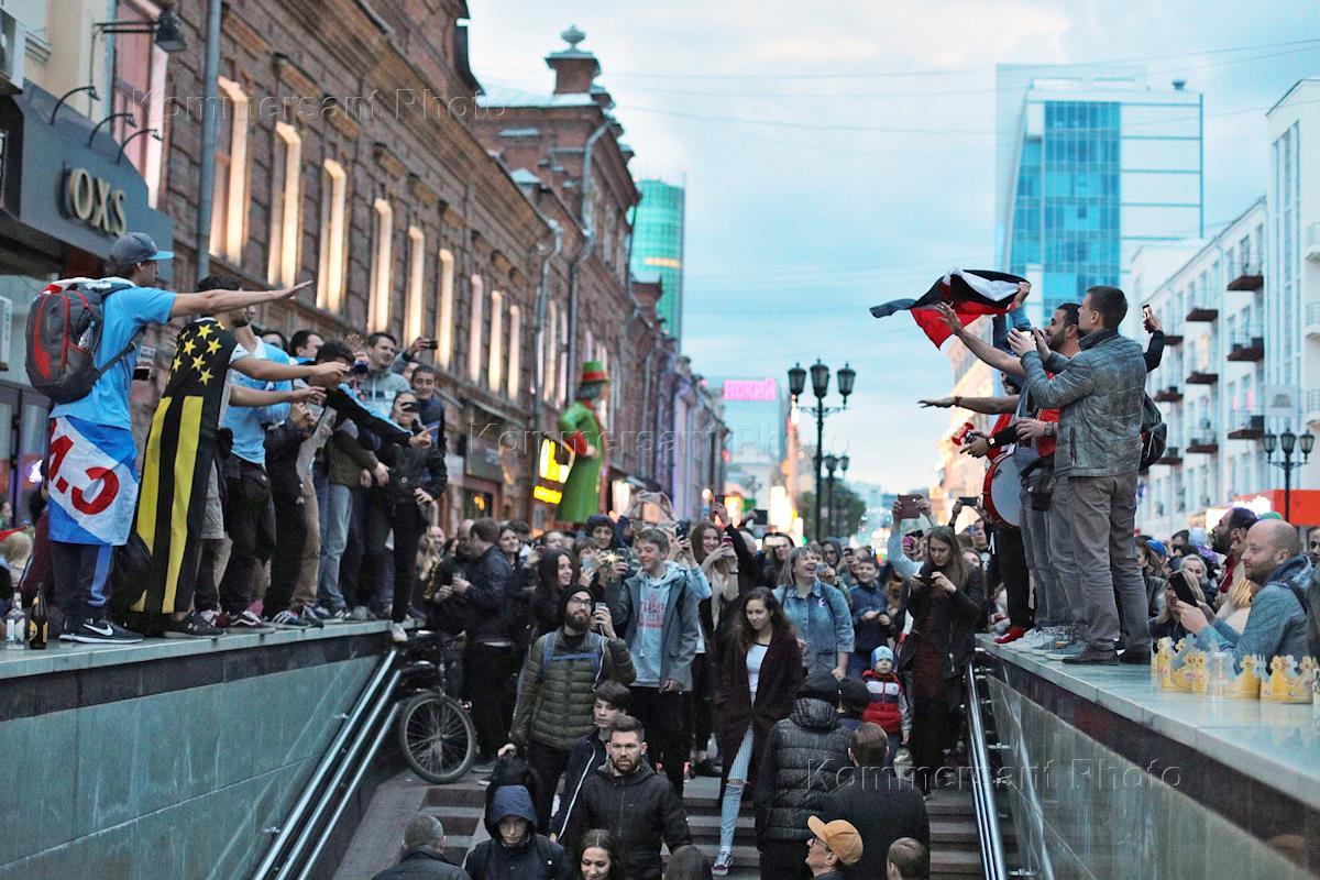 Чемпионат мира по футболу в России FIFA 2018. Групповой этап. Болельщики после матча между сборными Египта и Уругвая.