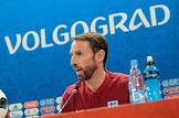 Чемпионат мира по футболу в России FIFA-2018. Групповой этап. Тренировка сборной Англии перед матчем со сборной командой Туниса. Главный тренер сборной Англии Гарет Саутгейт во время пресс-конференции после окончания тренировки.