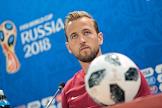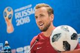 Чемпионат мира по футболу в России FIFA-2018. Групповой этап. Тренировка сборной Англии перед матчем со сборной командой Туниса. Игрок сборной Англии Гарри Кейн во время пресс-конференции после окончания тренировки.