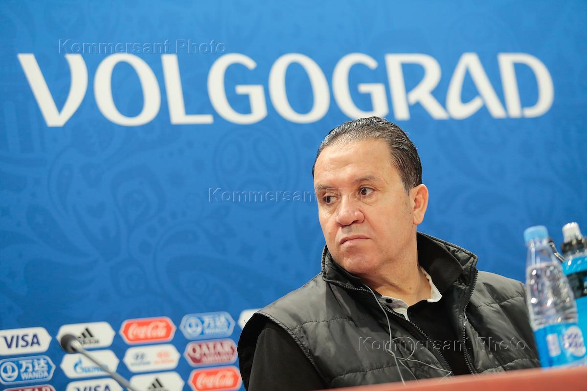 Чемпионат мира по футболу в России FIFA-2018. Тренировка сборной Туниса перед матчем со сборной командой Англии. Главный тренер сборной Туниса Набиль Маалул во время пресс-конференции после окончания тренировки.