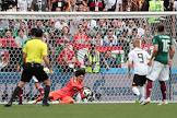 Чемпионат мира по футболу в России FIFA-2018. Групповой этап. Матч между сборными командами Германии и Мексики на стадионе "Лужники". Вратарь сборной Мексики Гильермо Очоа (второй слева) во время матча.