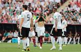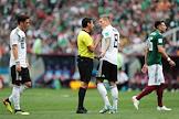 Чемпионат мира по футболу в России FIFA-2018. Групповой этап. Матч между сборными командами Германии и Мексики на стадионе "Лужники". Игроки сборной Германии Месут Озил (слева), Тони Кроос (второй справа) и игрок сборной Мексики Эктор Эррера (справа) во время матча.