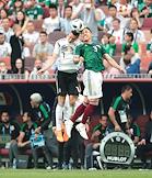 Чемпионат мира по футболу в России FIFA-2018. Групповой этап. Матч между сборными командами Германии и Мексики на стадионе "Лужники". Игрок сборной Мексики Эктор Морено (в центре) и игрок сборной Германии Матс Хуммельс (справа) во время матча .
