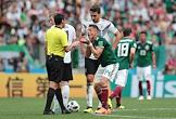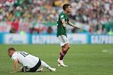 Чемпионат мира по футболу в России FIFA-2018. Групповой этап. Матч между сборными командами Германии и Мексики на стадионе "Лужники". Игрок сборной Мексики Хавьер Эрнандес (в центре) во время матча.