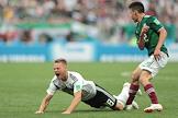 Чемпионат мира по футболу в России FIFA-2018. Групповой этап. Матч между сборными командами Германии и Мексики на стадионе "Лужники". Игрок сборной Германии Юлиан Дракслер (слева) и игрок сборной Мексики Карлос Сальседо (справа) во время матча.