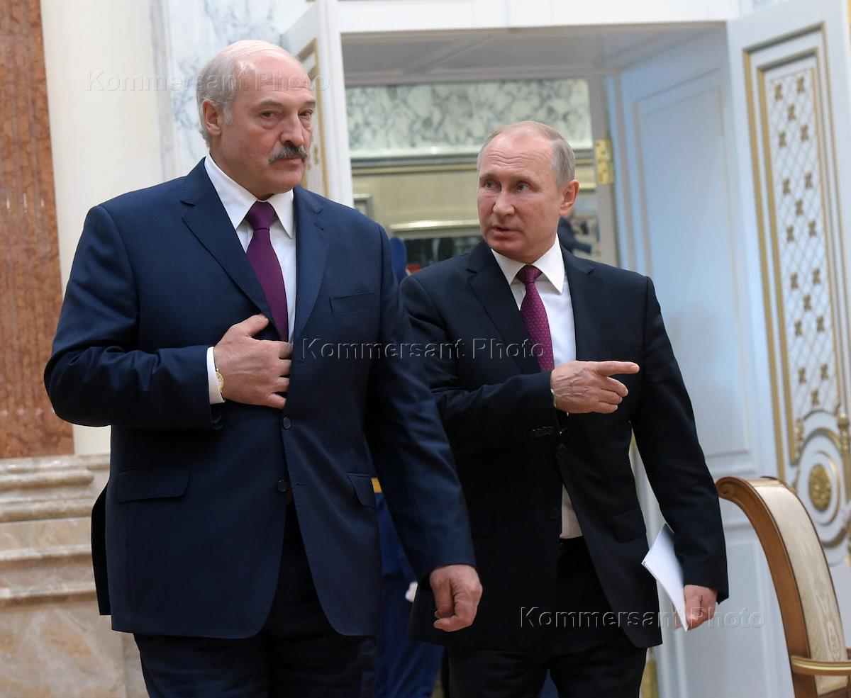 Рабочая поездка президента России Владимир Путина в Минск. Президент России Владимир Путин (справа) и президент Белоруссии Александр Лукашенко (слева) во время встречи.
