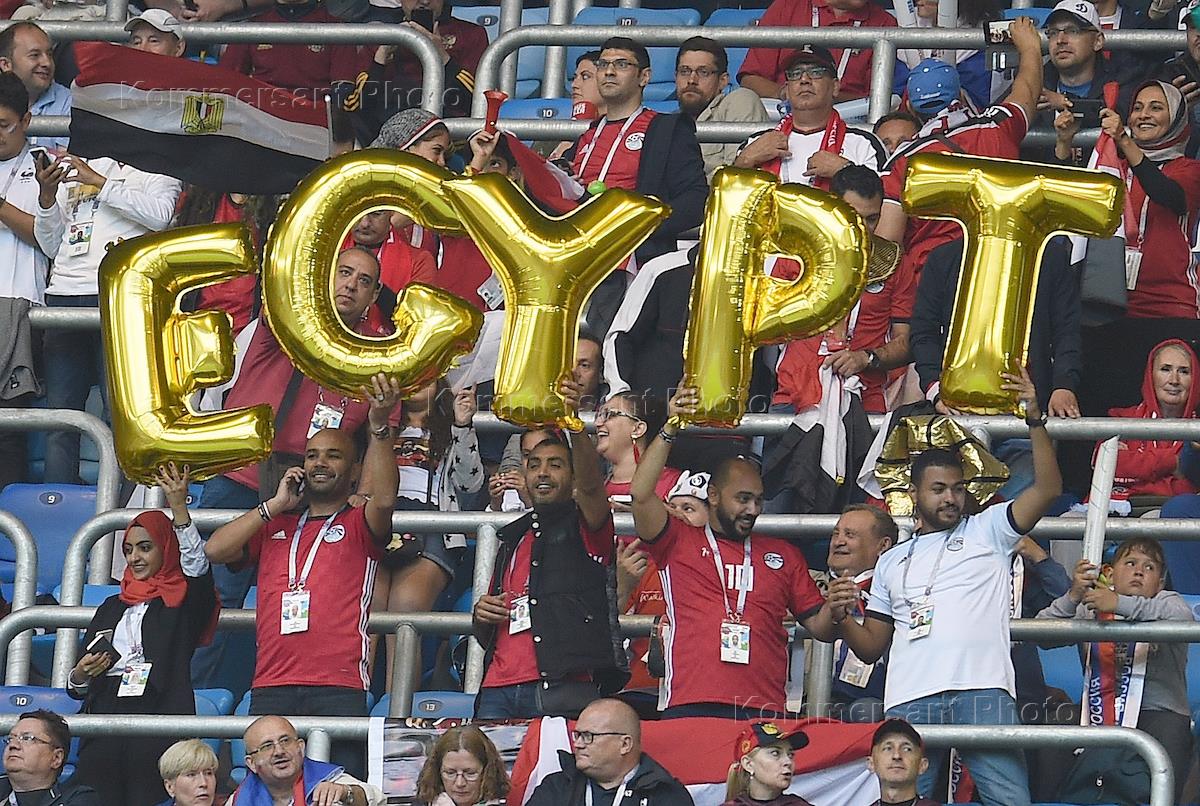 Чемпионат мира по футболу в России FIFA-2018. Групповой этап. Групповой этап. Матч между сборными командами России и Египет на стадионе "Санкт-Петербург". Болельщики сборной Египта перед началом матча.