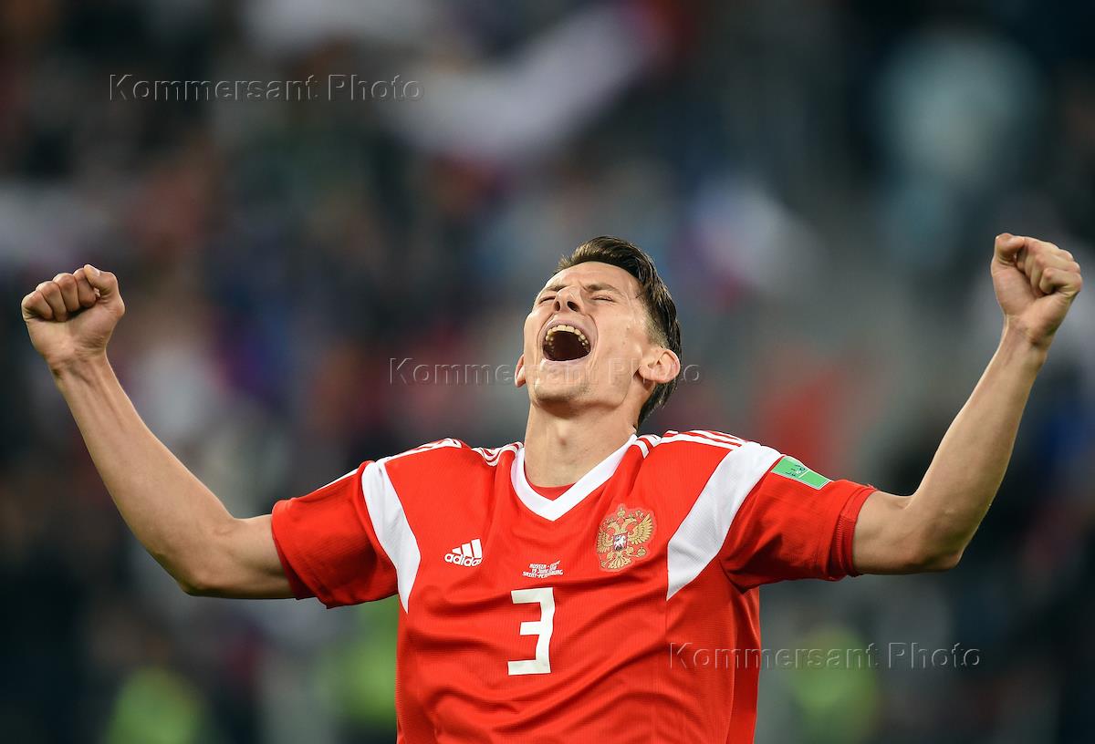 FIFA World Cup 2018 Russia. Group A. Russia v Egypt at the "Saint-Peterburg" stadium. Russian football player Artyom Dzuba (right) during the match.