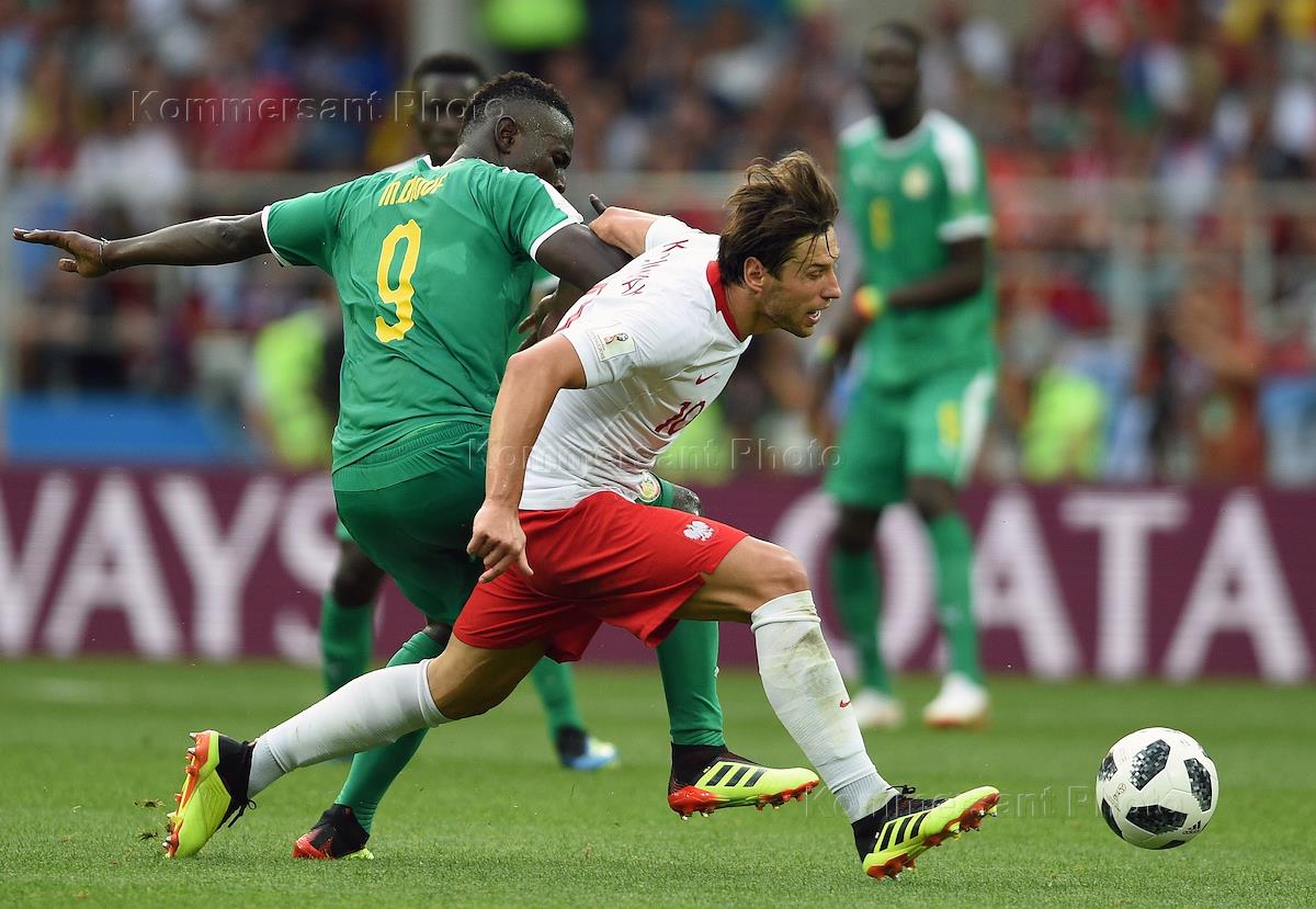 FIFA Wold Cup 2018 Russia. Group H. Poland v Senegal at “Spartak ” stadium. Senegal football player Mbayer Niang (left) and Polish football player Grzegorz Krychwiak (right) during the match.