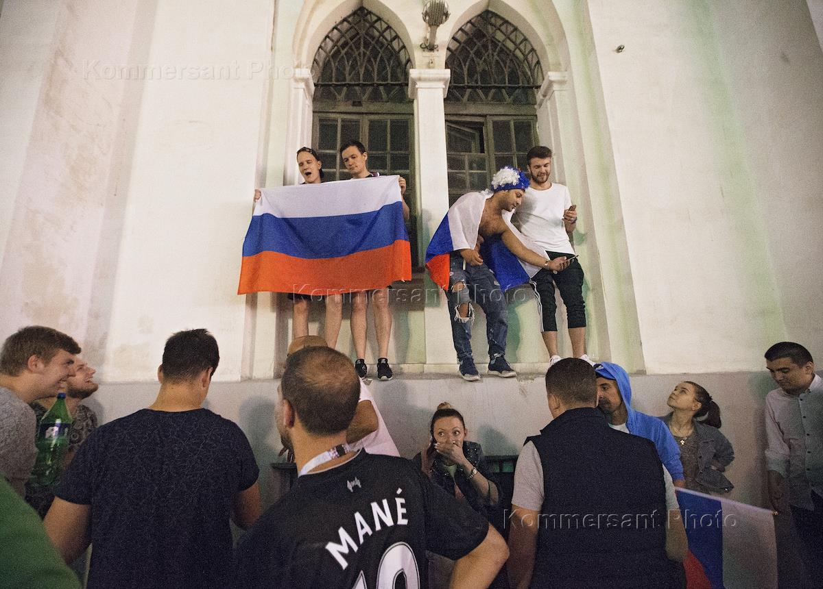 Народные гулянья в центре Москвы в честь победы сборной России по футболу в груповом этапе Чемпионата Мира по футболу 2018
