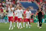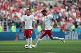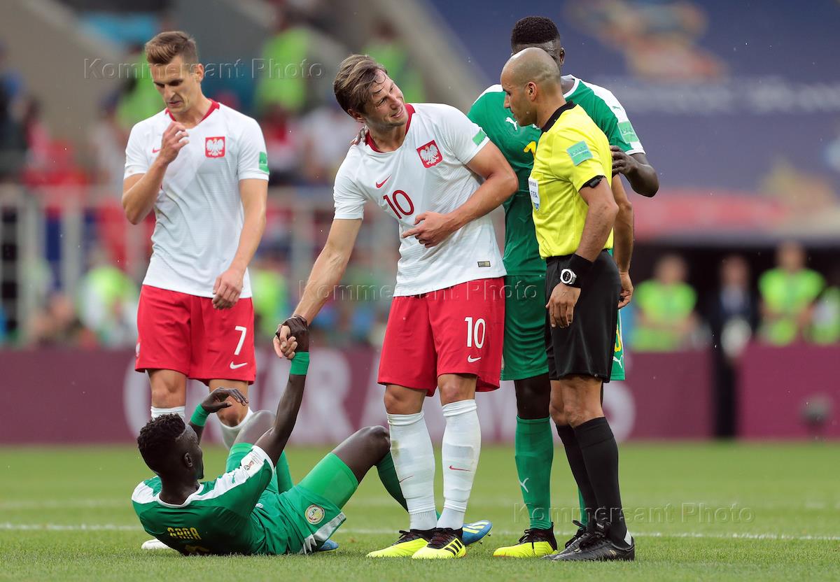 Чемпионат мира по футболу в России FIFA-2018. Групповой этап. Матч между сборными командами Польши и Сенегала на стадионе "Спартак". Игроки сборной Польши Аркадиуш Милик (слева) Гжегож Крыховяк (в центре) во время матча.