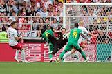 Чемпионат мира по футболу в России FIFA-2018. Групповой этап. Матч между сборными командами Польши и Сенегала на стадионе "Спартак". Слева направо: игроки сборной Польши Ян Беднарек, Давид Ковнацки, Мацей Рыбус и вратарь Войцех Щенсны во время матча.