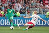 Чемпионат мира по футболу в России FIFA-2018. Групповой этап. Матч между сборными командами Польши и Сенегала на стадионе "Спартак". Игрок сборной Польши Тиаго Чонек (слева) и игрок сборной Сенегала Мбайе Ньянг (справа) во время матча.