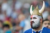 Чемпионат мира по футболу в России FIFA-2018. Групповой этап. Матч между сборными командами Польши и Сенегала на стадионе "Спартак". Болельщики. "Король польских болельщиков" Анджей Бобовски (слева) перед началом матча.