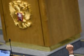Пленарное заседание Государственной думы (ГД) России. Жанровая фотография. Кулак голосующего депутата.