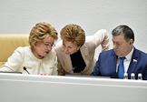 Пленарное заседание Совета Федерации (СФ) России. Слева направо: председатель Совета Федерации России Валентина Матвиенко, заместители председателя СФ России Галина Карелова и Евгений Бушмин во время заседания.