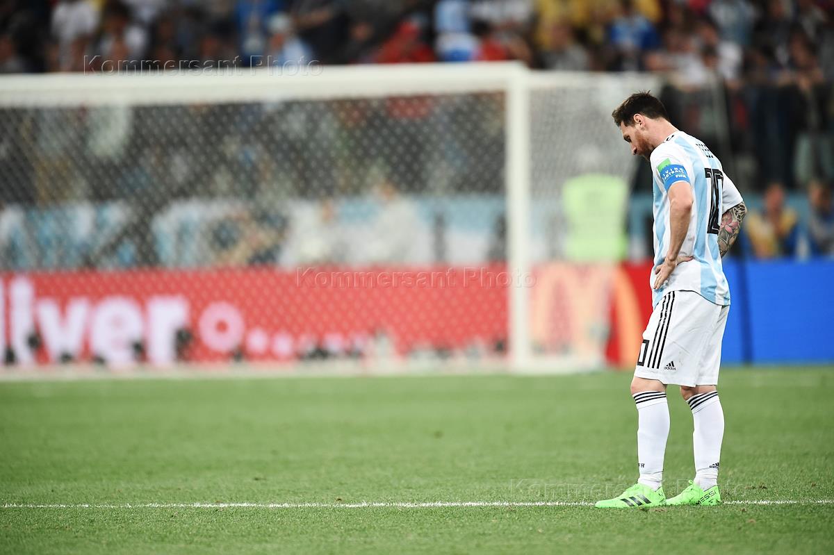 Чемпионат мира по футболу в России FIFA-2018. Групповой этап. Матч между сборными Аргентины и Хорватии на стадионе "Нижний Новгород". Игрок сборной Аргентины Лионель Месси во время матча.