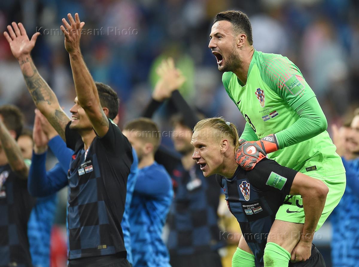 Чемпионат мира по футболу в России FIFA-2018. Групповой этап. Матч между сборными Аргентины и Хорватии на стадионе "Нижний Новгород". Вратарь сборной Хорватии Даниэль Субашич (справа) во время матча.