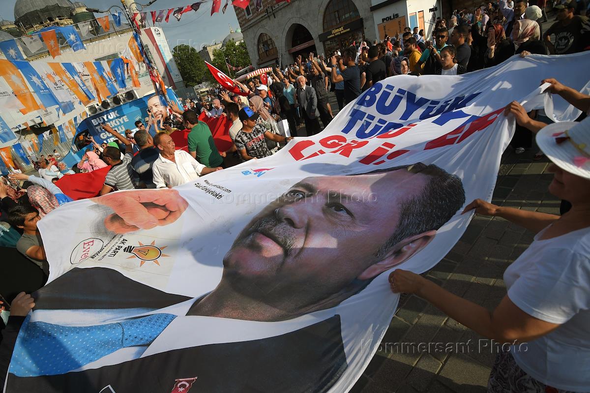 Предвыборная кампания по выборам президента Турции. Агитационный плакат кандидата на пост президента, действующего президента Турции Реджепа Тайипа Эрдогана.