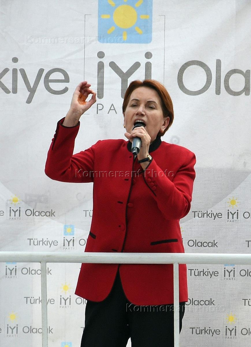 Предвыборная кампания по выборам президента Турции. Кандидат на пост президента Мерал Акшенер во время выступления перед избирателями.