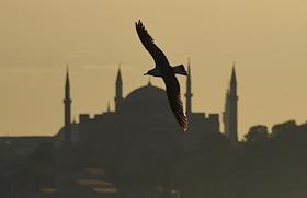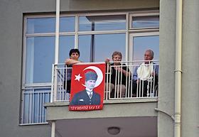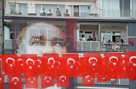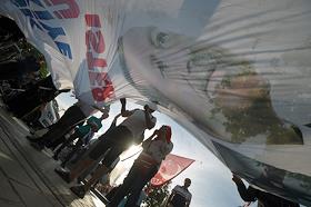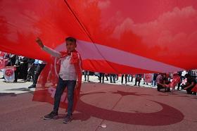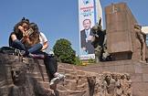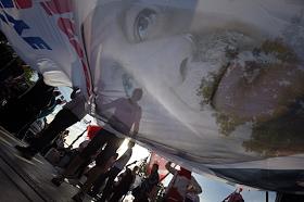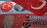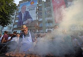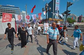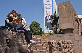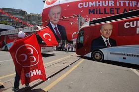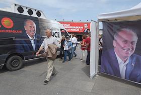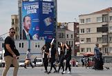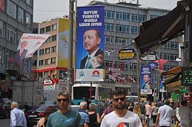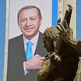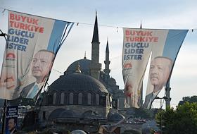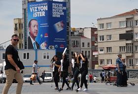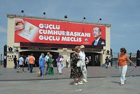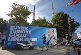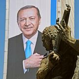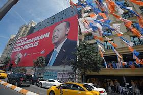 Turkish president election. Pre-election banner on a building.