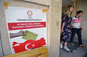 Turkish president election. Voters at the polling station.
