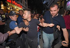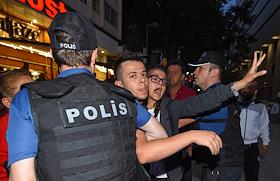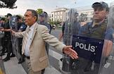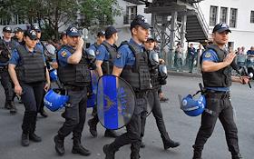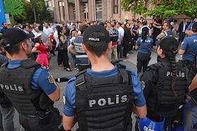 Turkish president election. Policemen during the duty near the polling station.