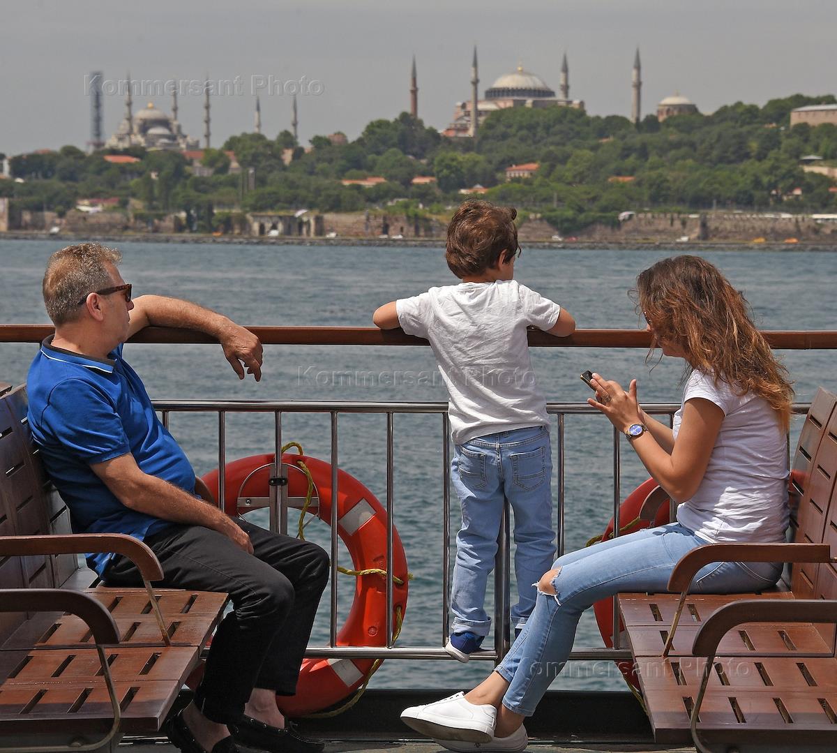 Genre photo. Family on a pleasure boat.