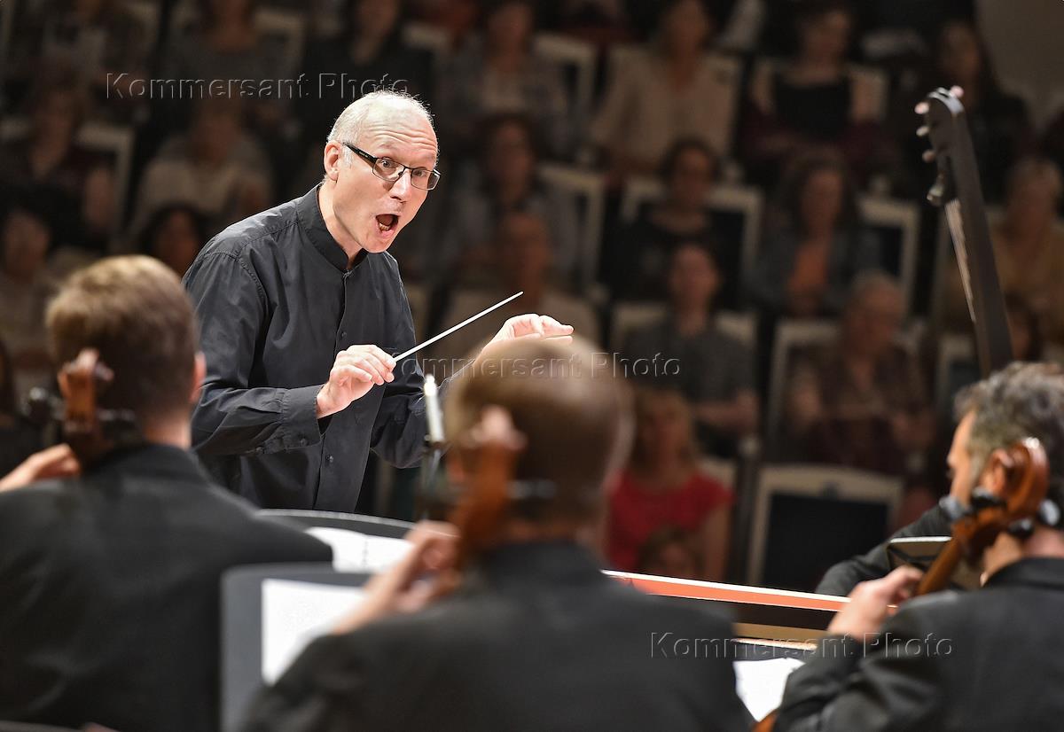 Концертное исполнение оперы "Оттон" композитора Георга Фридриха Генделя в Концертном зале имени П.И. Чайковского. Дирижер Кристофер Мулдс во время исполнения.