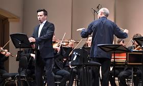 Концертное исполнение оперы "Оттон" композитора Георга Фридриха Генделя в Концертном зале имени П.И. Чайковского. Дирижер Кристофер Мулдс (справа) и оперный певец Александр Миминошвили (слева) во время исполнения.