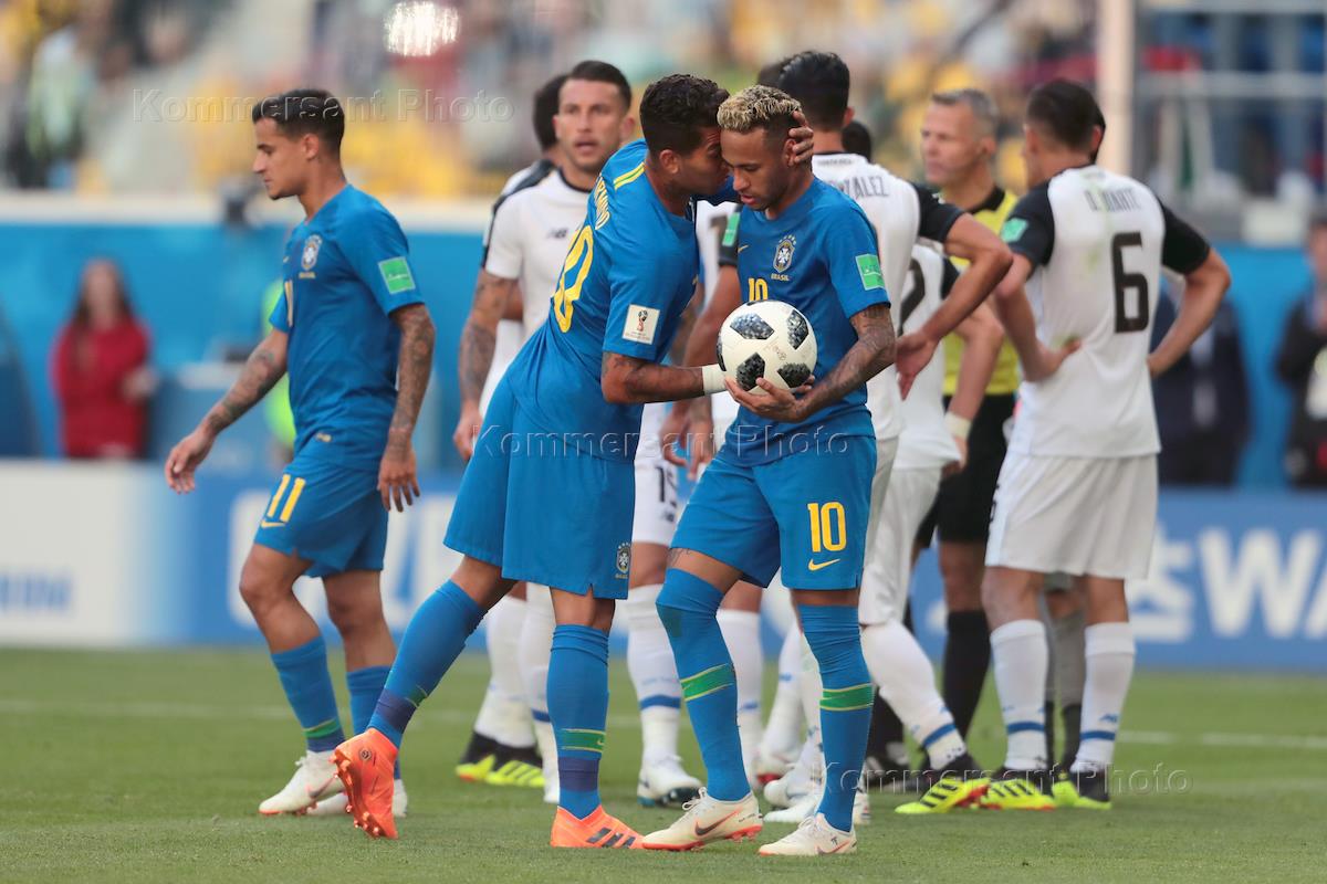 Чемпионат мира по футболу в России FIFA-2018. Групповой этап. Матч между сборными командами Бразилии и Коста Рики на стадионе "Санкт-Петербург". Игроки сборной Бразилии во время матча.