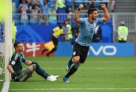 Чемпионат мира по футболу в России FIFA 2018. Групповой этап. Матч между сборными Уругвая и России прошел на стадионе "Самара Арена". Игрок сборной Уругвая Луис Суарес (справа) во время матча.