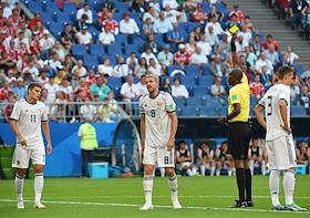Чемпионат мира по футболу в России FIFA 2018. Групповой этап. Матч между сборными Уругвая и России прошел на стадионе "Самара Арена". Вратарь сборной России Игорь Акинфеев (в центре) во время матча.