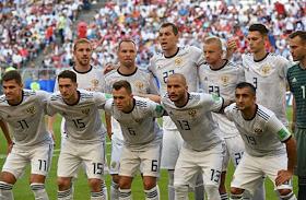 Чемпионат мира по футболу в России FIFA 2018. Групповой этап. Матч между сборными Уругвая и России прошел на стадионе "Самара Арена". Игроки сборной Россия перед началом матча.