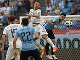 Чемпионат мира по футболу в России FIFA 2018. Групповой этап. Матч между сборными Уругвая и России прошел на стадионе "Самара Арена". Игроки сборной Уругвая во время матча.