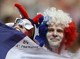 Чемпионат мира по футболу в России FIFA-2018. Групповой этап. Матч между сборными командами Дании и Франции на стадионе "Лужники". Болельщики сборной Франции на трибуне во время матча.
