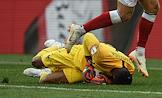 Чемпионат мира по футболу в России FIFA 2018. Групповой этап. Матч между сборными командами Дании и Франции на стадионе "Лужники". Вратарь сборной Франции Стивен Манданда во время матча.