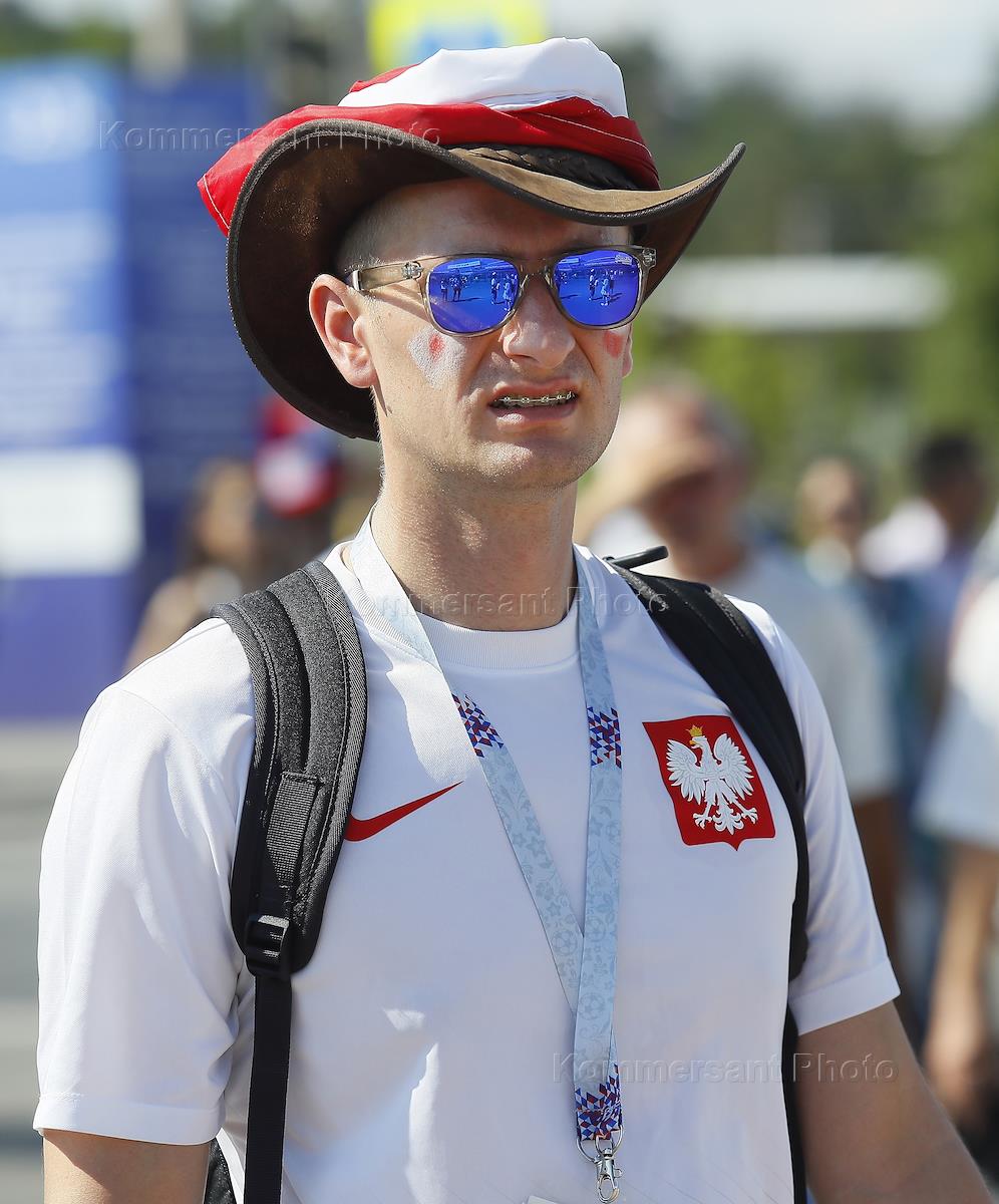 Чемпионат мира по футболу в России FIFA 2018. Групповой этап. Матч между сборными командами Японии и Польши прошел на стадионе "Волгоград Арена". Болельщики сборной Польши перед началом матча.
