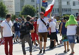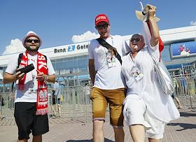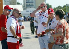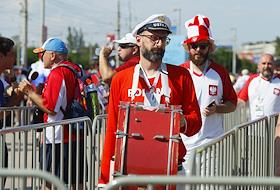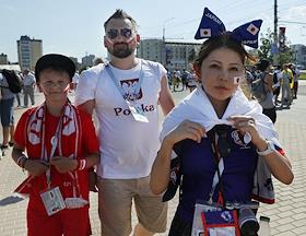 Чемпионат мира по футболу в России FIFA 2018. Групповой этап. Матч между сборными командами Японии и Польши прошел на стадионе "Волгоград Арена". Болельщики сборной Польши перед началом матча.