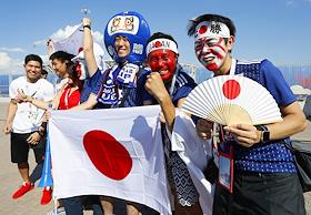 Чемпионат мира по футболу в России FIFA 2018. Групповой этап. Матч между сборными командами Японии и Польши прошел на стадионе "Волгоград Арена". Болельщики сборной Японии перед началом матча.