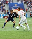Чемпионат мира по футболу в России FIFA 2018. Групповой этап. Матч между сборными командами Японии и Польши на стадионе "Волгоград Арена". Игрок сборной Японии Хируки Сакаи во время матча.