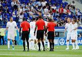 Чемпионат мира по футболу в России FIFA 2018. Групповой этап. Матч между сборными Японии и Польши прошел на стадионе "Волгоград Арена". Игрок сборной Польши Камиль Глик (в центре) и арбитр Дженни Сиказве (слева) во время матча.