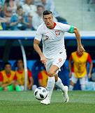 Чемпионат мира по футболу в России FIFA 2018. Групповой этап. Матч между сборными командами Японии и Польши на стадионе "Волгоград Арена". Игрок сборной Польши Роберт Левандовски во время матча.